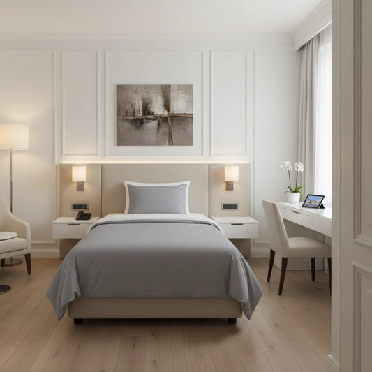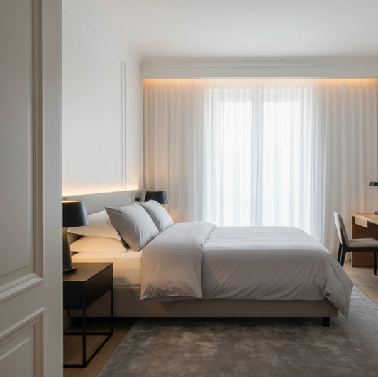 - Satijnkatoen - glad, soepel en met een lichte glans voor een luxe hotelgevoel.