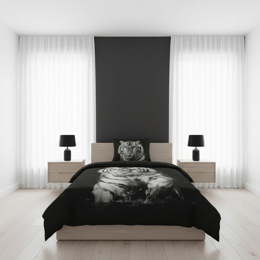 Dekbedovertrek 140x200 Katoen Witte Tijger Zwart