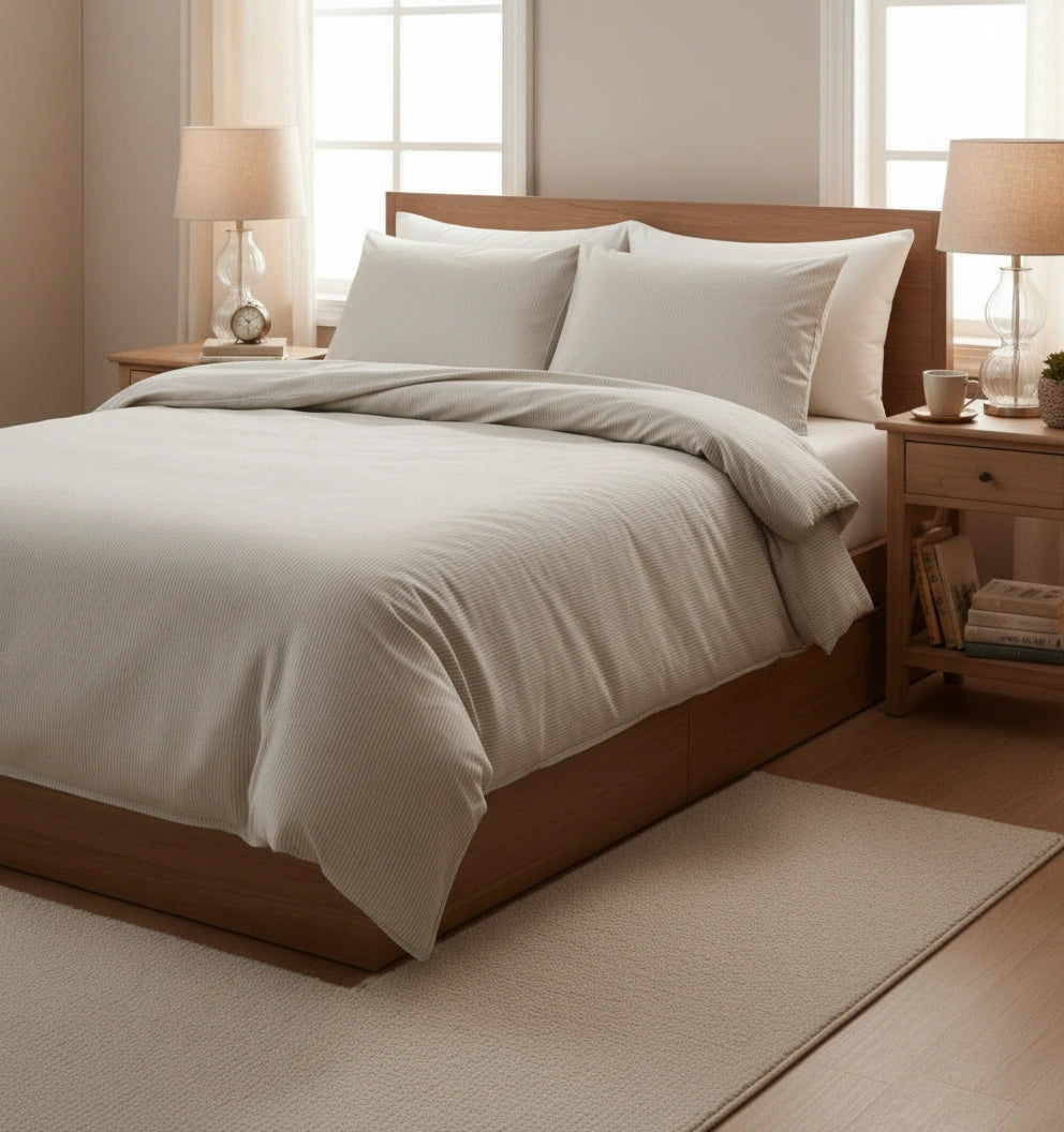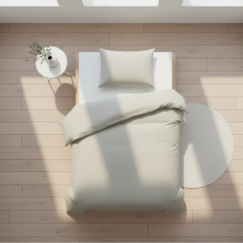 De fijne structuur en het rustige ontwerp geven een hotelwaardige uitstraling zonder drukke patronen, perfect voor wie houdt van minimalisme, harmonie en natuurlijk comfort.