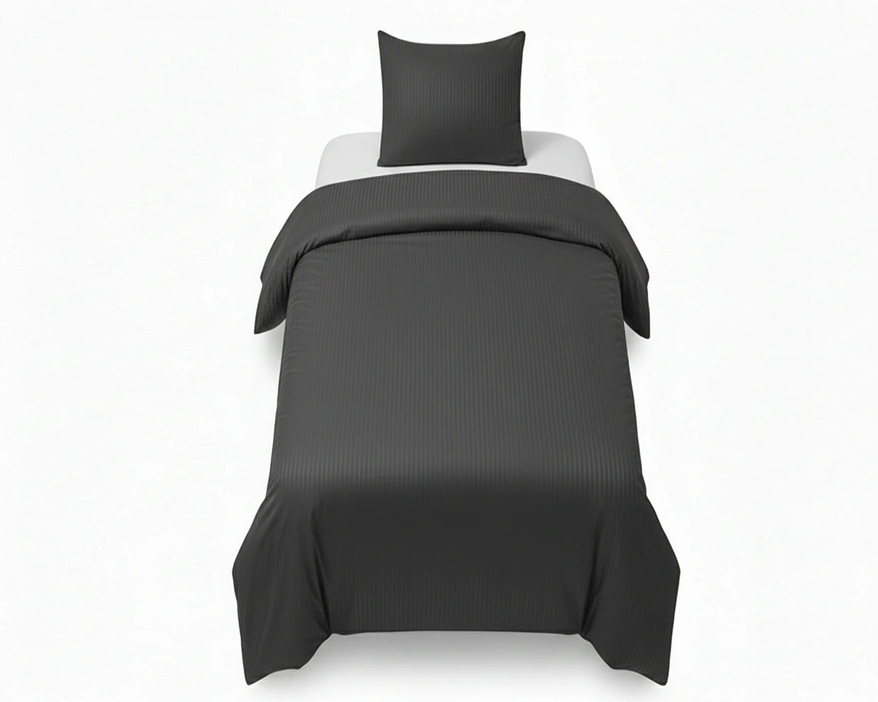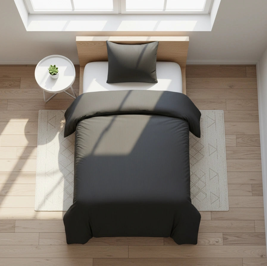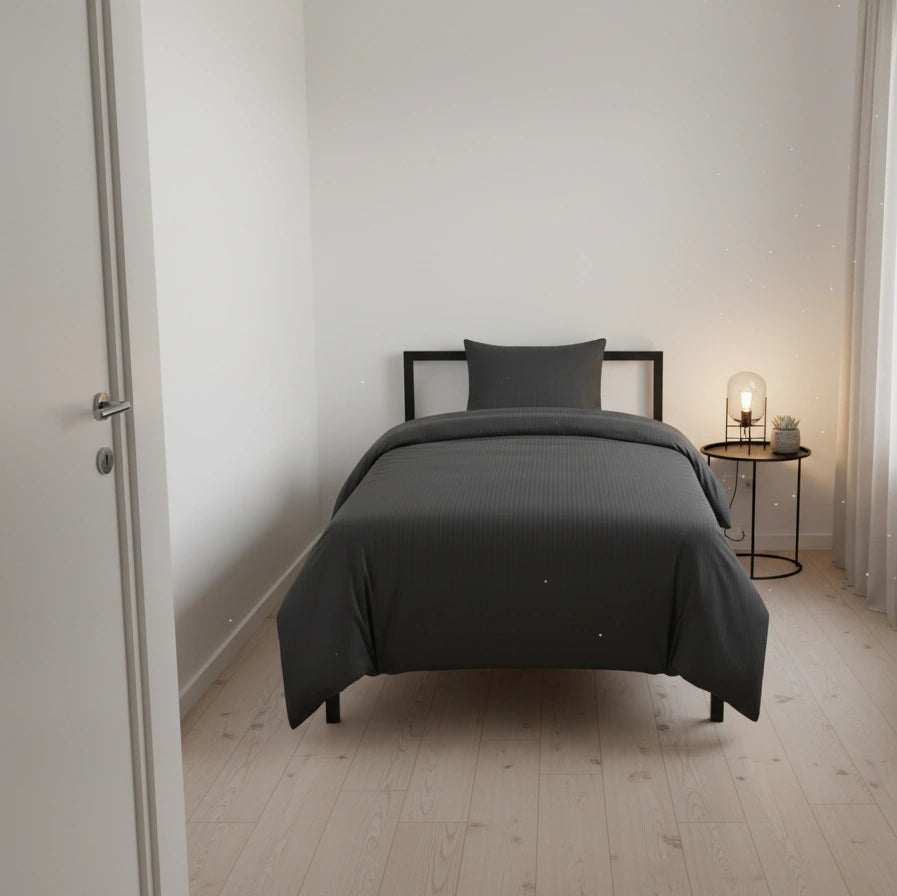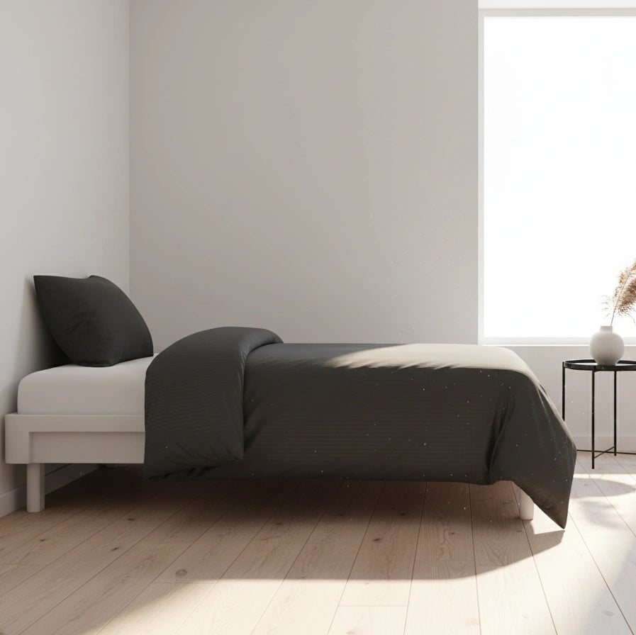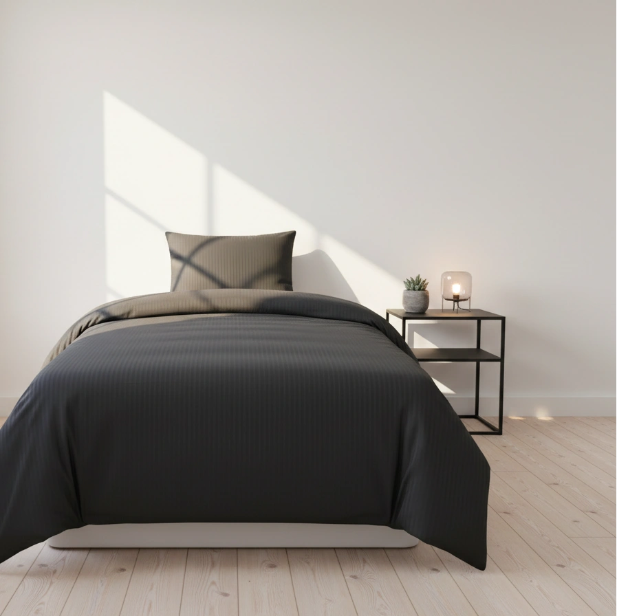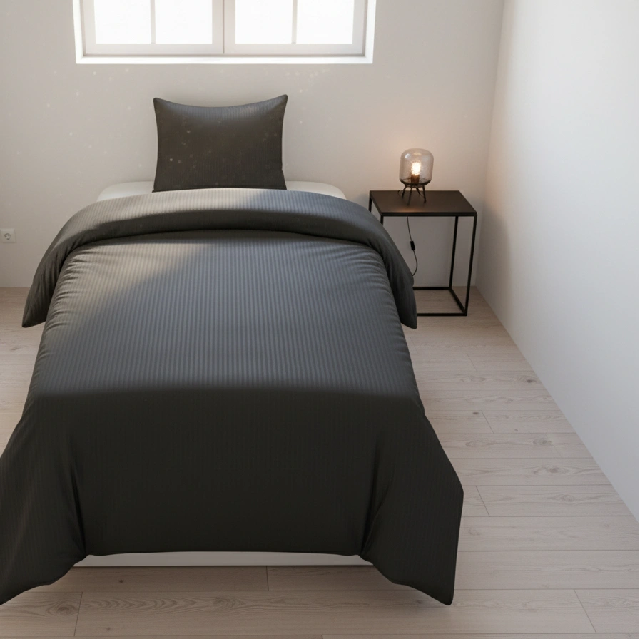 Dekbedovertrek 140x200 Satijn Katoen Gestreept Antraciet