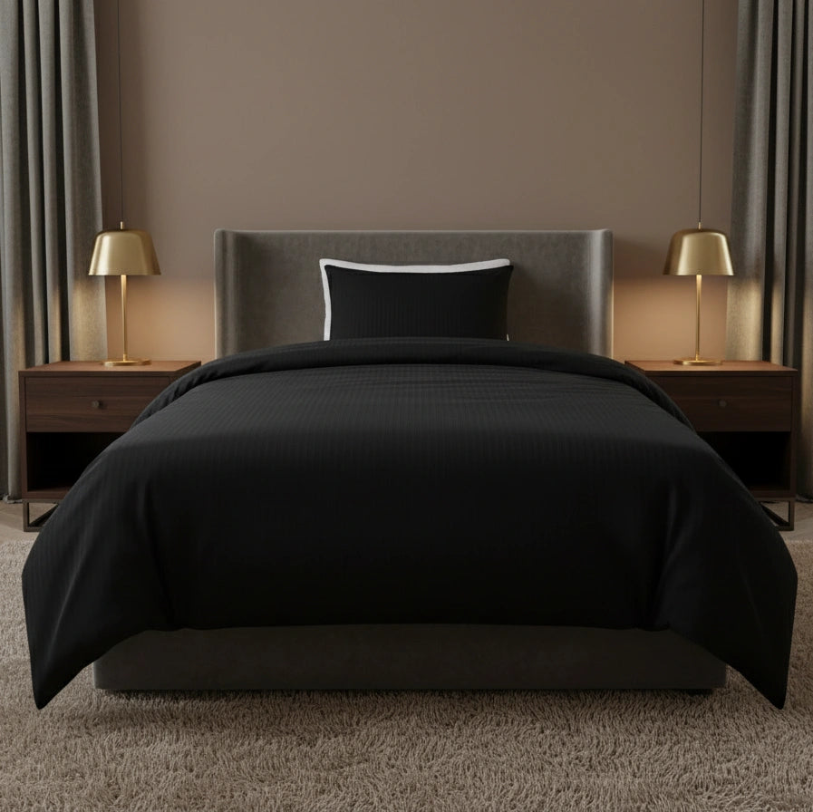 Dekbedovertrek 140x200 Satijn Katoen Gestreept Zwart