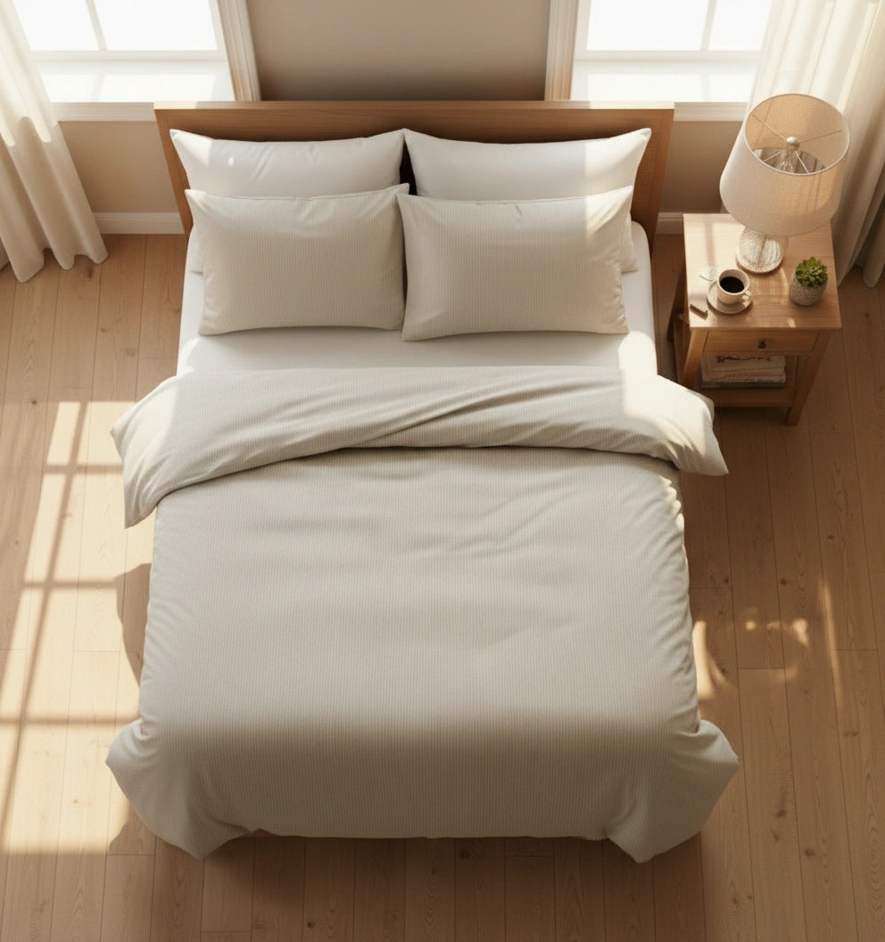 De fijne structuur en het rustige ontwerp geven een hotelwaardige uitstraling zonder drukke patronen, perfect voor wie houdt van minimalisme, harmonie en natuurlijk comfort.