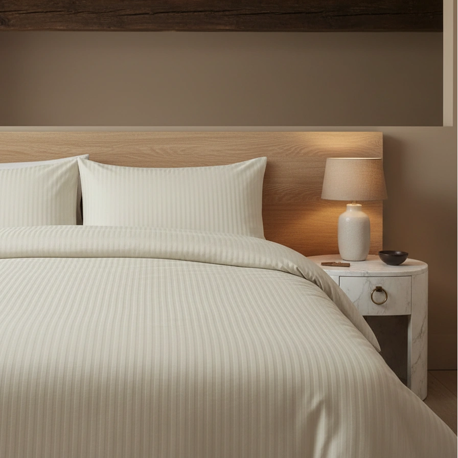 Dekbedovertrek 200x200 Satijn Katoen Gestreept Creme