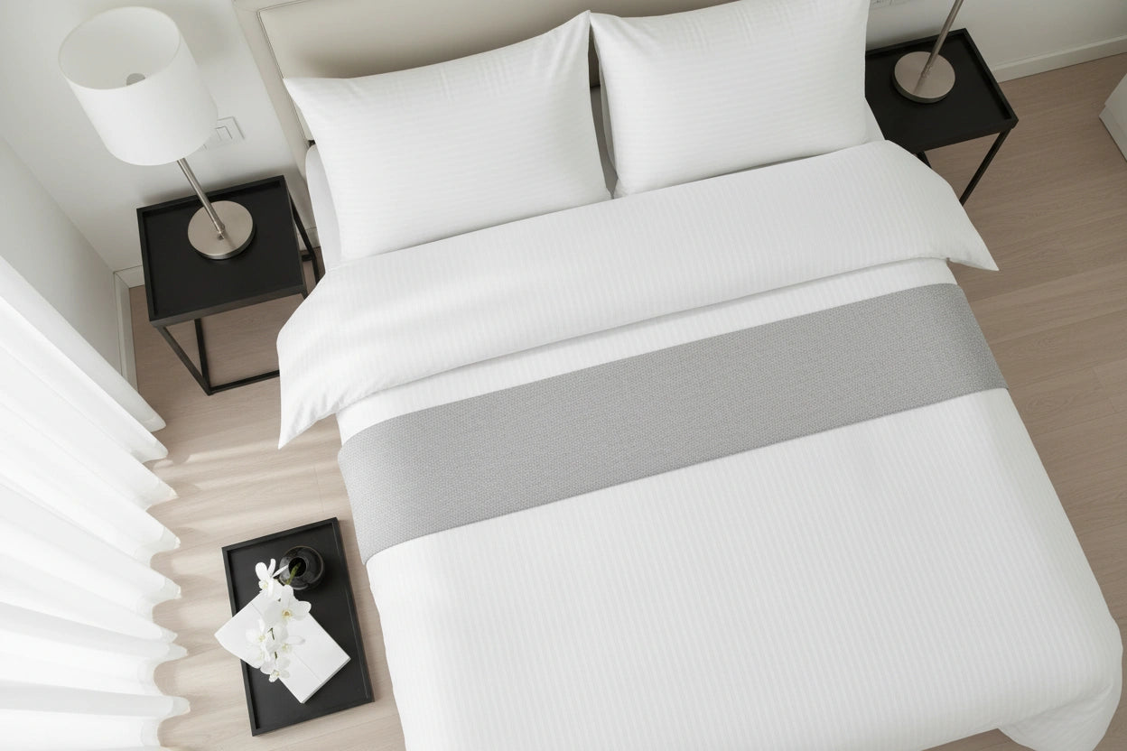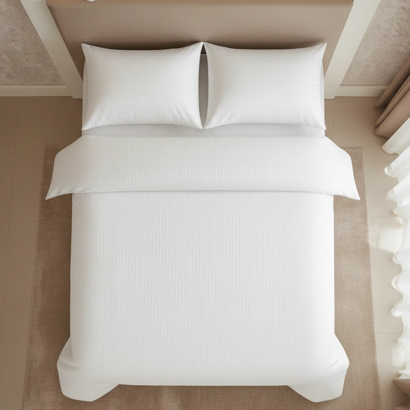 De 10 mm satijnstreep geeft het dekbedovertrek een subtiele glans en een herkenbare hoteluitstraling. Deze weving wordt veel gebruikt in de hotelbranche omdat het bed er verzorgd en luxe uitziet, zonder overdadig te zijn. Ook na veelvuldig wassen blijft de streep zichtbaar en het geheel strak ogen.