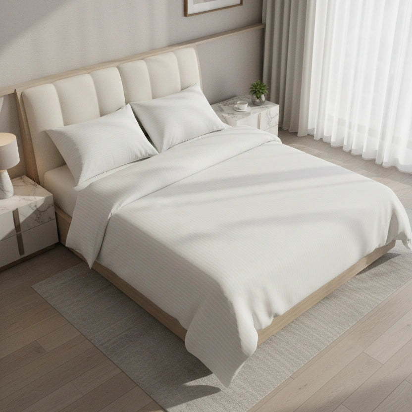Hotel Dekbedovertrek 200x200 - Satijn streep 10mm - Wit