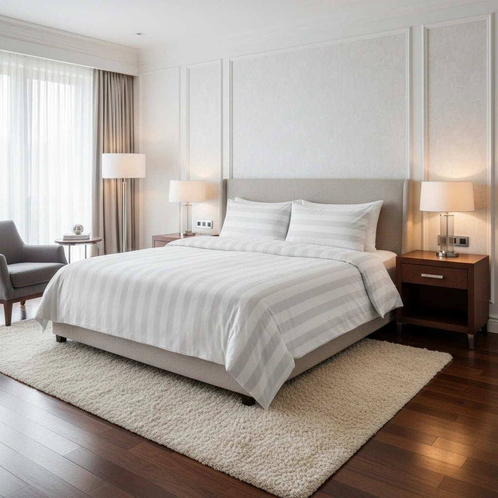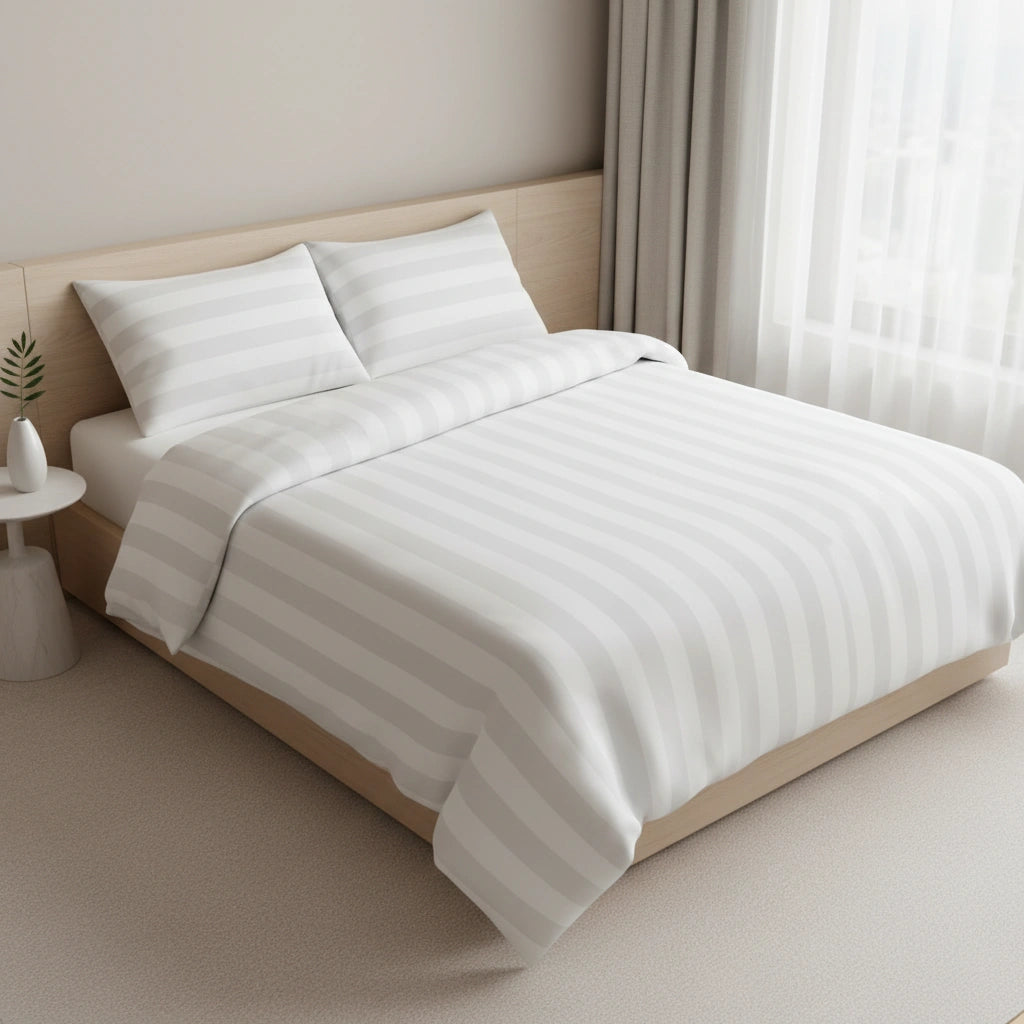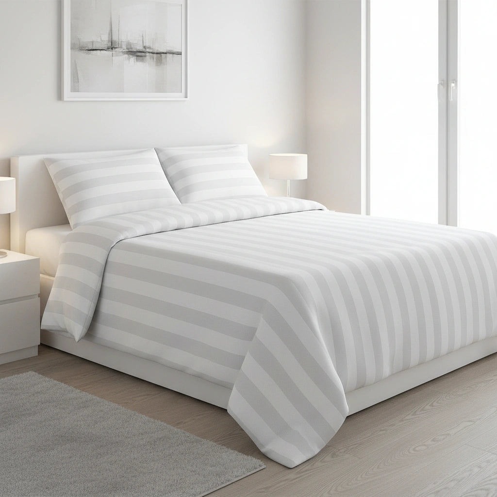 Dit lits-jumeaux dekbedovertrek is ontwikkeld voor professioneel gebruik in hotels en B&B’s, waar beddengoed vaak wordt gewassen en er elke dag een strak, fris bed moet liggen. De bredere satijnstreep van 27 mm geeft een rustige maar duidelijk zichtbare hoteluitstraling, terwijl de katoenmix (80% katoen / 20% polyester) helpt om het overtrek vormvast, sterk en netjes te houden, ook bij intensief gebruik. Zo haal je thuis dezelfde verzorgde hotelbasis in huis: comfortabel, praktisch en langdurig mooi.
