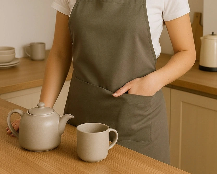 Professioneel unisex horeca keukenschort in bruin, gemaakt van duurzame kwaliteit. Sterk, comfortabel en voorzien van een handige voorzak. Ideaal voor koks, bediening, barista’s en thuisgebruik met dezelfde betrouwbare horecakwaliteit.