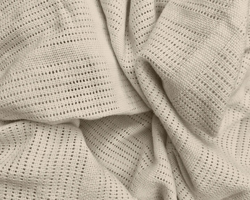 Lichte, ademende plaid van 100% katoen. Fris, huidvriendelijk en ideaal voor bank, bed en warme seizoenen. Zacht beige dat elke ruimte warmte en natuurlijke rust brengt.
