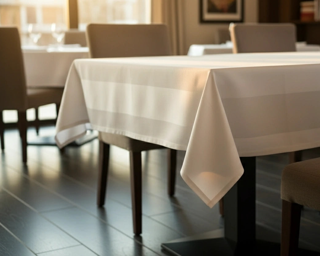 Dit tafelkleed maakt deel uit van professioneel tafellinnen dat dagelijks wordt gebruikt in restaurants en horecagelegenheden, waar duurzaamheid, vormvastheid en een verzorgde uitstraling essentieel zijn.
