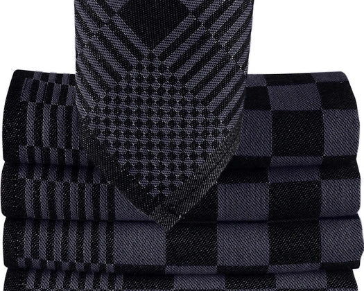 Theedoeken Geruit 65x65 cm - Set van 6 - Antraciet-Zwart