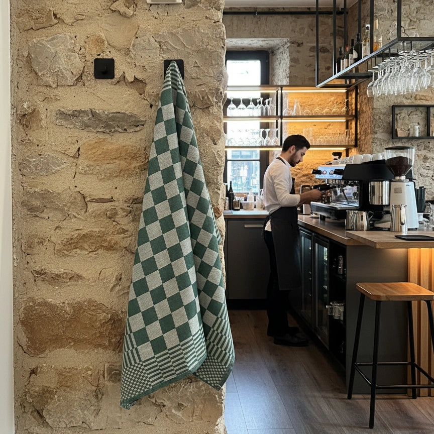 Professionele geblokte horeca theedoeken van 100% katoen in groen. Extra sterk, snel drogend en zeer absorberend. Ontworpen voor intensief gebruik in keukens, restaurants én voor consumenten die thuis horecakwaliteit willen.