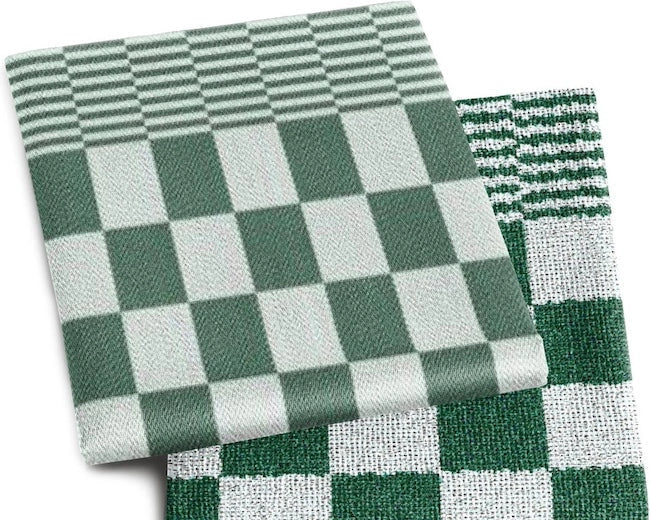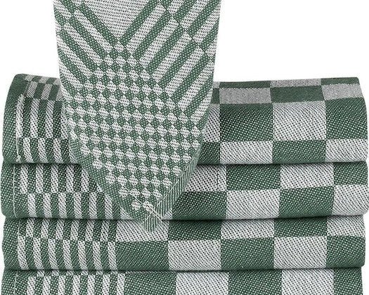 Onze best verkochte set geruite theedoeken en handdoeken in groen-wit bestaat uit 6 theedoeken en 6 handdoeken, ontwikkeld voor professioneel gebruik in horeca en zorg, en dagelijks betrouwbaar in huiselijke keukens.